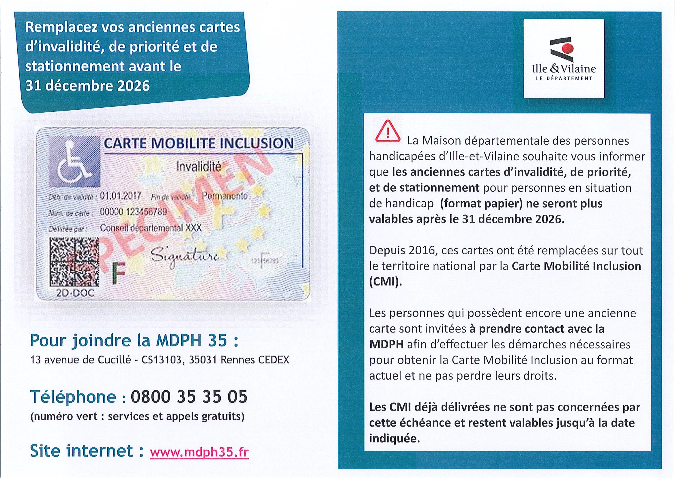 09 Avr Carte mobilité inclusion Posted at 09:06h in Actualités by Mairie de Chateauneuf d'Ille et Vilaine